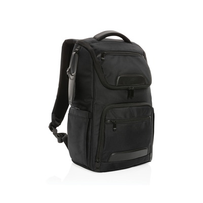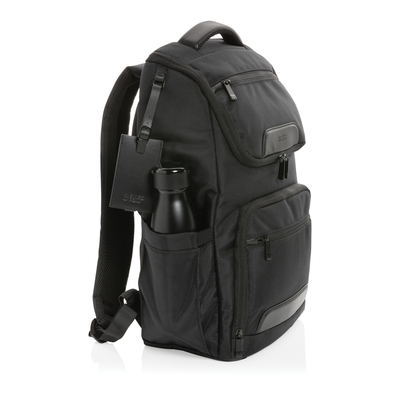 Make the daily commute a little bit easier and a lot more stylish with this laptop backpack. The bag is made from durable 1680D recycled polyester fabric with rich PU details and features a well designed shape with multiple pockets for storage and organisation. In addition to the roomy main compartment, this backpack features a padded 15.6" laptop pocket and an additonal zipper pocket to hold your other daily essentials. Other features of this backpack include a USB output, RFID pockets, pen loops, a detachable luggage tag and a side water bottle pocket. Exterior: 100% 1680D polyester / Lining: 150D recycled polyester. With AWARE™ tracer that validates the genuine use of recycled materials. Each bag has reused 49.92 0.5L PET bottles. 2% of proceeds of each product sold containing AWARE™ will be donated to Water.org.
