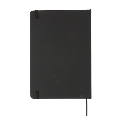 Ruled A5 hardcover PU classic notebook with elastic closure and black bookmark ribbon. 144 pages of 70g/m2 paper inside. Cream coloured pages.