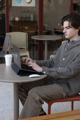 The Mobile Office Laptop Sleeve offers both protection and comfort with its innovative design, transforming into a laptop stand that provides a 4cm incline for improved ergonomics and better laptop heat dissipation. Its rear pocket for slim essentials like phones or notebooks provide efficient storage. A sleek, functional solution for the modern professional on the go. Crafted with AWARE™, the use of genuine recycled fabric is guaranteed. 20% recycled content. Registered design®