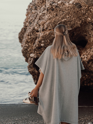Hammam poncho designed with two different types of textures, one side in terry and the other side plain weave. The poncho is a practical and versatile garment, perfect for the beach or by the pool. It has an excellent absorbency and dries up quickly. The poncho is crafted from 75% cotton and 25% polyester and has a thickness of 360 gsm. Measurements: 100x95cm. OEKO-TEX® STANDARD 100. 09.HIN.68091. Hohenstein HTTI.