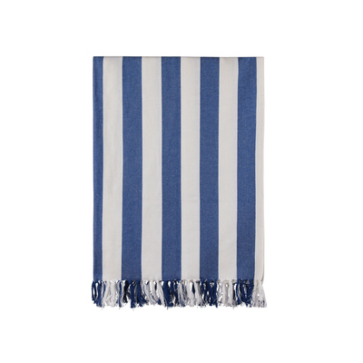 This hammam beach towel features a classic two-coloured striped pattern with fringes on the short sides. Crafted from a lightweight and airy 200 gsm blend, it combines the comfort of cotton with the quick-drying benefits of polyester. Measuring 80x180 cm, it is perfect for the beach or poolside. Certified by GRS (Global Recycled Standard), GRS certification guarantees that the entire supply chain of the recycled materials is certified. The total recycled content is based on the overall product weight. This product contains 68% GRS certified recycled cotton and 29% GRS certified recycled polyester.