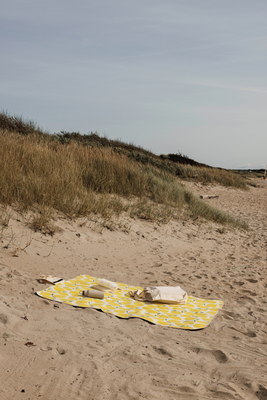 Elevate your outdoor adventures with this GRS certified recycled PET picnic blanket. Featuring a soft fleece surface with a lively lemon pattern and convenient water repellent PEVA backing. The smart design with a cotton canvas flap and long handle, makes the blanket easy to fold and carry, perfect for both the beach or the park. Certified by GRS (Global Recycled Standard), GRS certification guarantees that the entire supply chain of the recycled materials is certified. The total recycled content is based on the overall product weight. This product contains 51% GRS certified recycled PET.