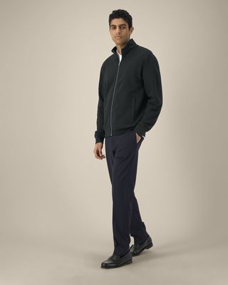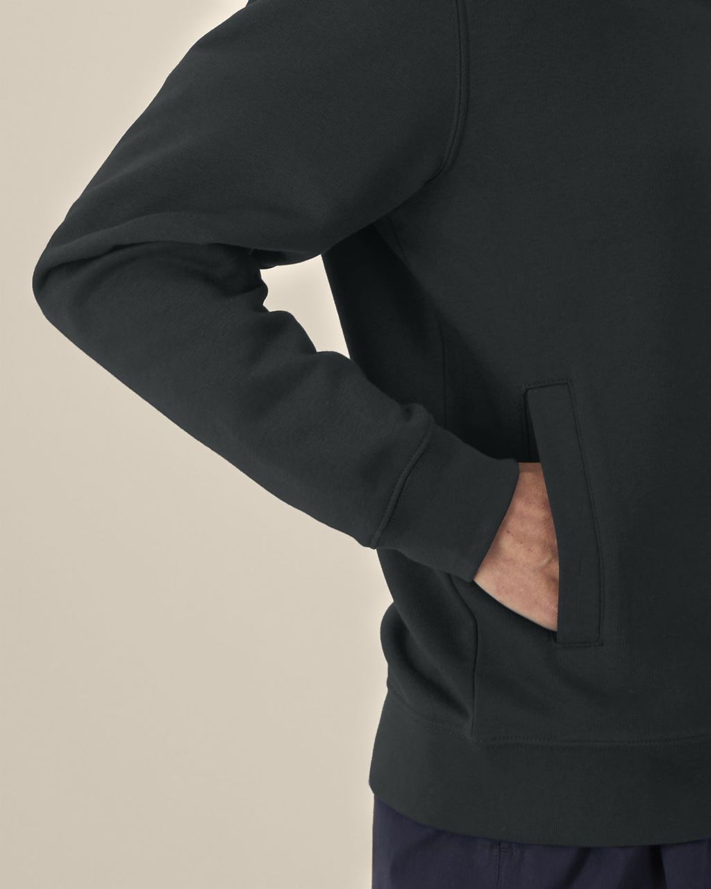 1x1 rib at sleeve cuffs and hem