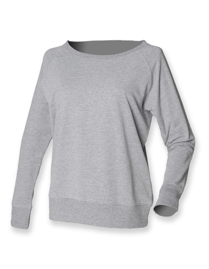 Volný střih s širokým výstřihem a raglánovými rukávy