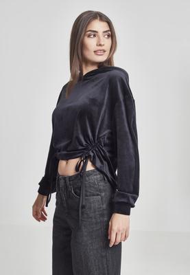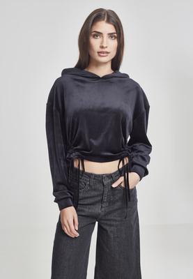 Velvety soft and very feminine, the Velvet Hoody has a trendy oversized cut. The highlight of this shortened hoody are the drawstrings, which are made of velvet ribbon and inserted diagonally on both sides of the front panel – thus the chic front section can be gathered individually. A soft hood without drawstring completes the look with style.