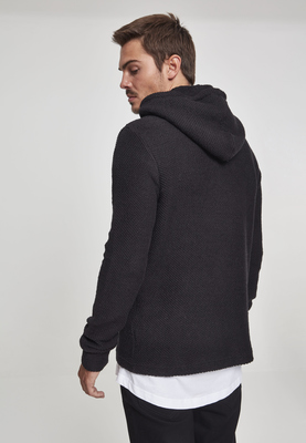 Simple but strong: This generously cut hoody combines street wear hoodie style with the characteristics of a winter sweater. A special highlight is the diagonal weave of the fabric, which gives it a clear line. Cuffs at the sleeves and drawstring at the hood are giving you the possibility to fit the sweater to your body and needs, anytime.