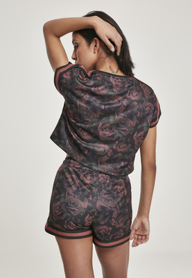 Ladies Short Extended Shoulder Stripes Mesh Tee flower L