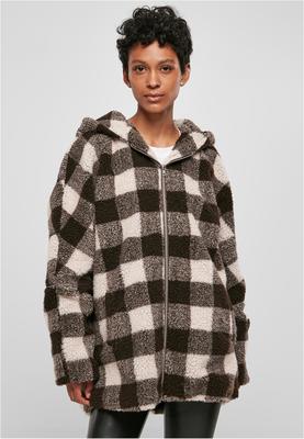 Ladies Hooded Oversized Check Sherpa Jacket firered/blk M