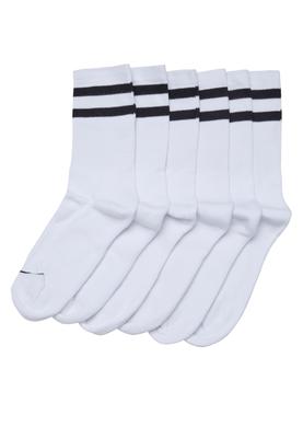 Socks designed for everyday wear, these crew-length cotton-blend jersey socks offer a comfortable fit with light stretch for easy movement and an everyday layer under sneakers or casual shoes. The sock features a ribbed cuff that helps keep it in place, double stripe detailing at the upper cuff and a small stripe at the toe for subtle visual interest, and a smooth knit body that sits close to the foot without bulk. A stitched toe seam ensures comfort at the front, while the breathable knit and resilient construction make them a reliable option for regular rotation and straightforward care.