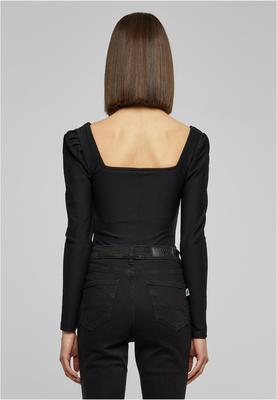 This sexy body for daring ladies features a low-cut boat neckline at front and back. The effect of the notable cleavage is enhanced by feminine puff sleeves. The women's body offers medium-high cutouts for the legs and double row snap fasteners for closure. It huddles up nicely to the figure. The supple stretch rib material ensures great wearing comfort.