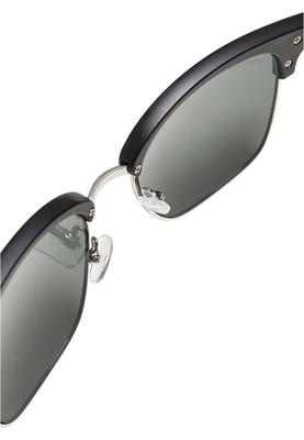 Equipped with UV 400 angular lenses and elaborate frame accents at the top of the lenses these sunglasses are as casual as a Sunday morning on Crete. A simple nose bridge and straight, narrow metallic sides skillfully complete the design, while adjustable nose pads offer best wearing comfort. An authentic highlight is the supplementing pearl chain. The hip accessory is made of polycarbonate, copper and glass.