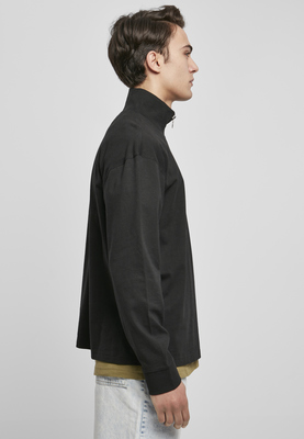 The plain-colored sweatshirt for men features a casual oversize fit with dropped shoulders. Its stand-up collar with zip lapel is a trendy accent. The urban style is rounded off by wide cuffs. The half-zip sweater is made of heavy cotton fabric.