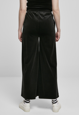 The comfortable sweatpants for women enchant with a stretch velvet material that cleverly enhances the modest look of the trousers. They offer wide and straight legs, an elastic waistband and two handy side pockets. The leisurely trousers are a loose fit and comfortable.