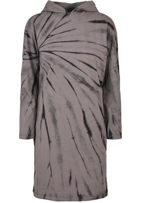 This noticeable women's dress is a hot and casual reinterpretation of a hoody in form of a sporty dress. It has long sleeves, hood and side pockets. The cut is a sexy oversize mini length. The style highlight is the consistent all-over tie dye look. The dress is made of supple single jersey cotton.