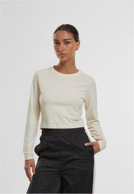 The ladies top is a modest essential for any urban wardrobe. It offers a classic look with long sleeves and a crew neck. The short, cropped appearance sets a fashionable style accent. The slim fit longsleeve is made of skin-friendly stretch organic cotton and includes the appropriate label.