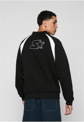 The masculine track jacket impresses with a minimalistic shape and a maximum in functionality. The employed material mix of cotton, polyester, micro-mesh and taffeta, together with a regular fit, provide perfect wearing comfort. Furthermore, it is equipped with wide cuffs on sleeves and hem, generous side pockets, a zipper as well as a college-styled collar. Colored narrow inserts on front and back of the shoulders set additional accents. The branding is visible as an embossing print on the back and as a Starter logo patch on the front.