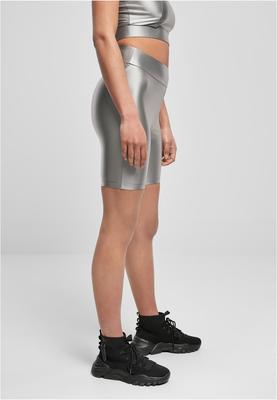 Enticing cycling shorts for all women with a sense for trendy summer outfits. The skin-tight cycling shorts serve as fashionable half-height leggings that proficiently show the best of the legs. They are easy to combine with sporty tops and sneaker or flip-flops. The women's short leggings feature an extra high and wide elastic waistband. The fabric is a high-quality, shiny metallic nylon that guarantees to attract attention.