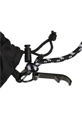 This shoulder bag is a smart accessory for sports or short trips. It is made to incorporate common drinking bottles and consists of environmentally friendly recycled polyester. For safe handling a drawstring with stopper stand at disposal. The outer pocket from mesh comes in handy, too as well as the lanyard that can be easily removed via two clip carabiners, if necessary. The smart accessory is rounded off by an additionally bottle opener.