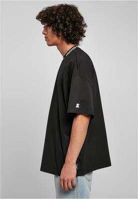The men's T-shirt satisfies with a Starter tape made of ribbed jacquard fabric that was integrated into the crew neck a simple detail, yet with a big impact. The Starter branding is rounded off by a fine embroidery on the left sleeve and a weave label on the left hem. The tee consists of proven single jersey cotton and is an oversize cut with dropped shoulders.