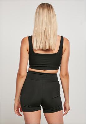 The simple womens sports bra convinced of recycled material. For an ideal wearing comfort, it has wide straps and an elastic under chest band. The cups are removable for an individual wearing comfort.