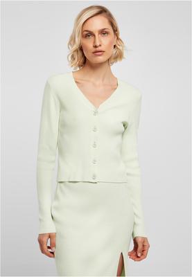 The light ladies' knit cardigan with an edged V-neckline and short button placket is a timeless accessory. Thanks to the used short length and a body-hugging slim fit it becomes an authentic urban fashion piece that is being enhanced through a reduced, edgeless design of cuffs and hem. The elegant knit cardigan is made of polyacrylic, viscose and nylon.