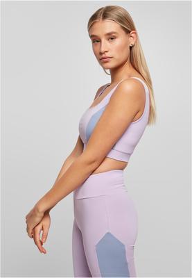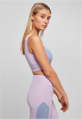 The functional sports bra is equipped with wide straps and a deep, angular neckline on front and back. Highlight is the dynamic color block design with matching color inserts on the straps and the sides. Removable cups as well as an elastic underbust band guarantee perfect wearing comfort. Optimizing the slim fit of the sports bra is the elastic tech stretch jersey material.