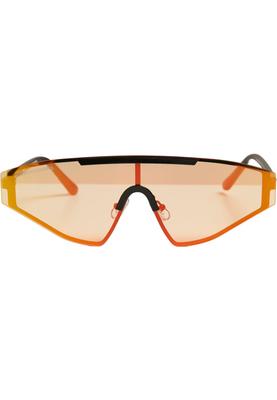 Sporty and shield shaped Urban Classics sunglasses in a set of two color variants. The lenses are triangular, the nose-bridge is glassed and the temples are fine and straight. The semicircular brow section of the sunglasses is emphasized by an insert above the nose bridge, while flexible nose pads guarantee an optimal fit. The sunglasses are made of polycarbonate, stainless steel and copper and offer UV 400 protection.