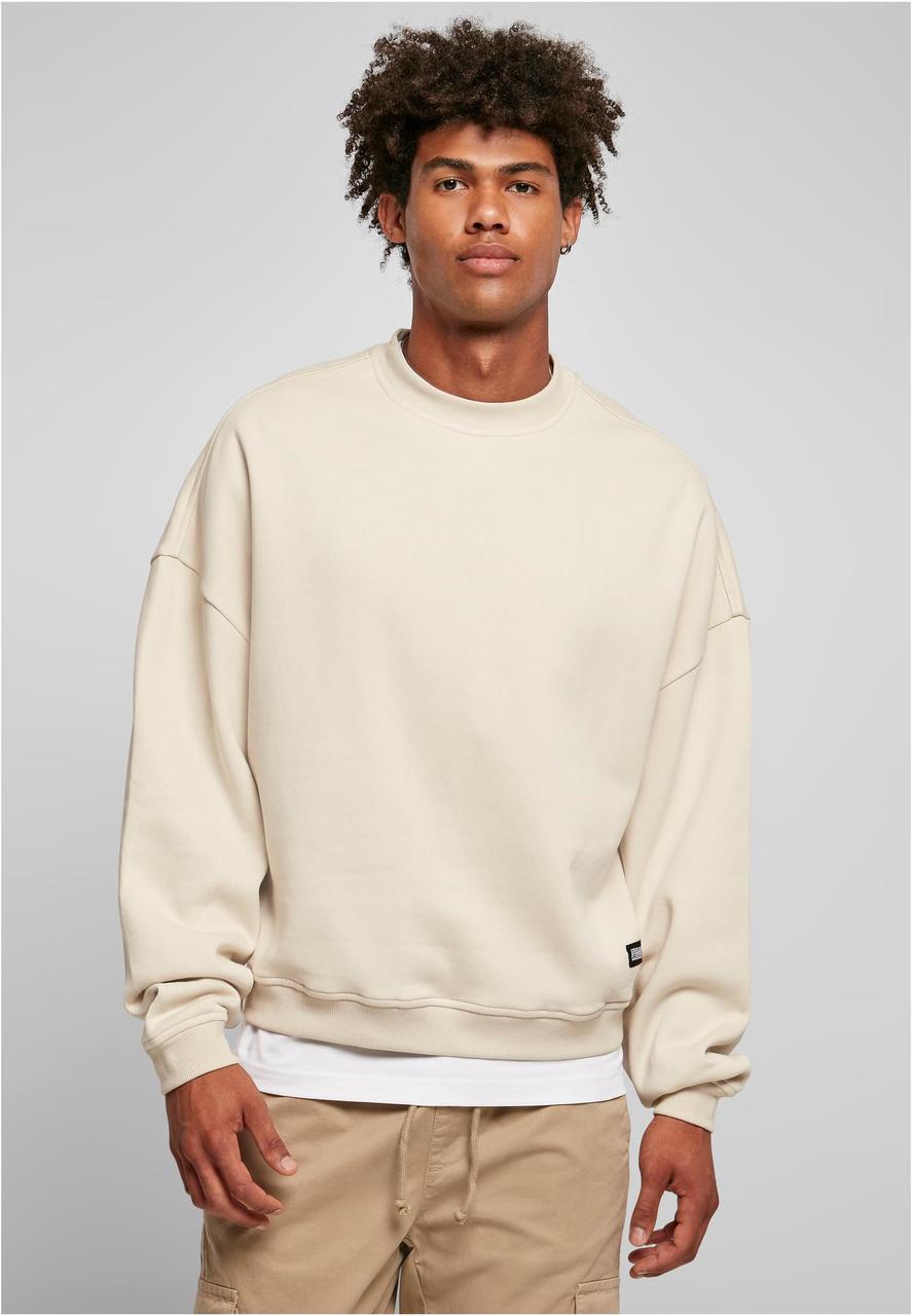 The snugly men's sweatshirt made of smooth terry fabric presents itself in a retro 80s style. Thanks to extra-long, wide sleeves and a generous loose fit cut with strongly dropped shoulders the established shape with wide rib cuffs on sleeves and hem as well as crew neck is being given a new twist. A small Urban Classics logo patch on the hem skillfully rounds off the casual style of the men's sweater.