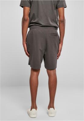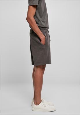 Comfy and sporty these men's shorts made of cozy French terry offer a relaxed style, which is upgraded by a vertical Urban Classics logo print in cursive lettering on the left thigh. The cozy sweat shorts are equipped with a wide, elastic waistband with rounded cotton drawstrings, eyelets and two side pockets. The additional back pocket features a handy Velcro fastener. The shorts are a loose fit.