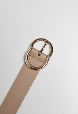The functional and narrow belt consists of a simple faux leather body and sets its style accent via a metallic pin buckle in the shape of a double ring. It is made of polyester and is available in four different lengths: 95 cm, 105 cm, 115 cm, and 125 cm.