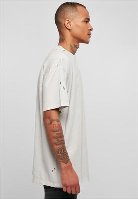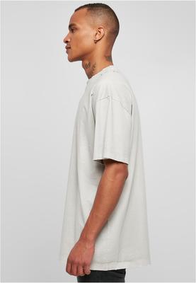 The basic mens tee brings variety to any urban fashion wardrobe. It shows classic lines with short sleeves and a crew neck as well as highlights such as the destroyed elements and the open edges on neckline, sleeves and hem. The chosen oversize fit provides the shirt with slightly dropped shoulders and impeccable wearing comfort. The pleasant cotton material made of single jersey contributes to this, too.