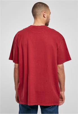 The basic mens tee brings variety to any urban fashion wardrobe. It shows classic lines with short sleeves and a crew neck as well as highlights such as the destroyed elements and the open edges on neckline, sleeves and hem. The chosen oversize fit provides the shirt with slightly dropped shoulders and impeccable wearing comfort. The pleasant cotton material made of single jersey contributes to this, too.