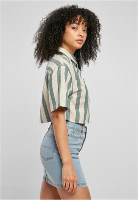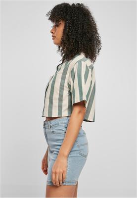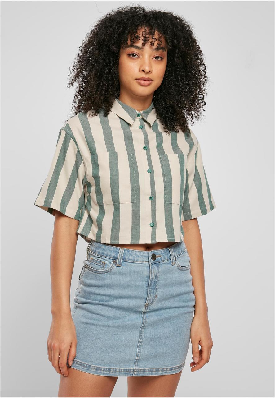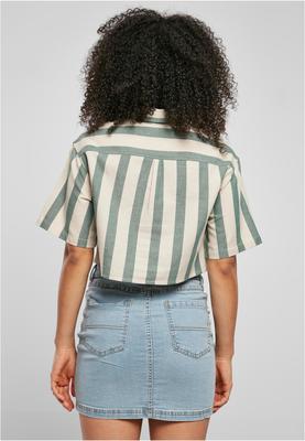 Eyes up for this wide striped women's shirt that is guaranteed to attract attention! The oversize fit with generously dropped shoulders contrasts perfectly with the length, pattern and typical shirt features such as collar, button placket and chest pockets. A yoke on the back completes the original feminine look. The cropped shirt is made of comfy cotton flannel.