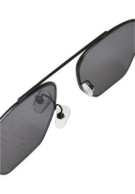 The sunglasses offer an extravagant, cool look. Slightly angular lenses are connected by a straight nose bridge and framed by a fine metallic frame. The sides are kept straight and narrow as well, while flexible nose pads optimize the wearing comfort. A smooth Urban Classics slipcover with drawstring closure complement the sunglasses made of stainless steel and polycarbonate that offer reliable UV 400 sun protection, too.