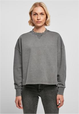 The women's crewneck is a sporty and casual companion that offers a bleached washing, a massive oversize fit with dropped shoulders and slightly slit side seams. A V-insert on the front of the ribbed crew neck sets an additional accent. The wide sleeve cuffs are ribbed as well and the women's crewneck is made of heavy terry cotton.