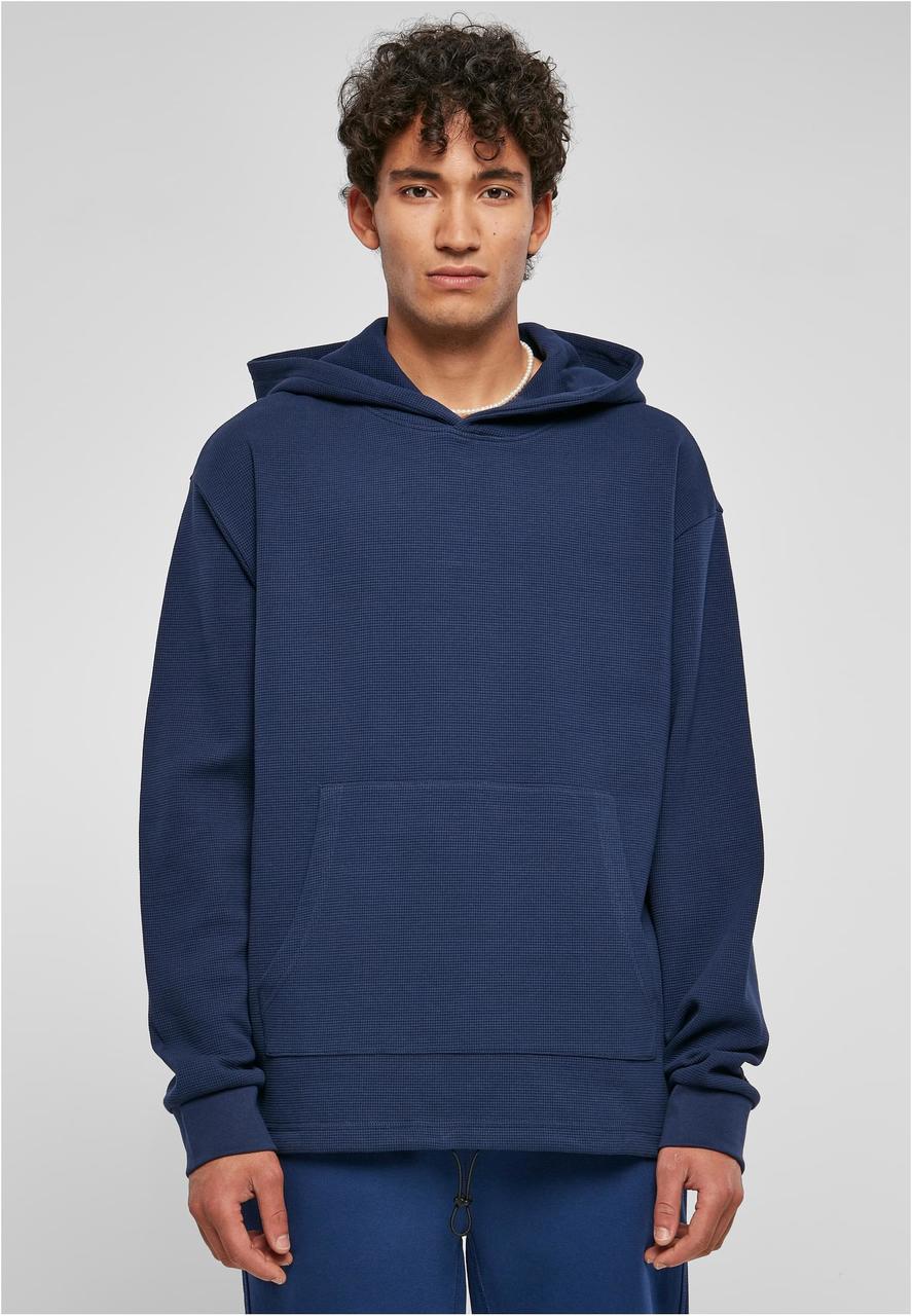 The men's hoody combines classic features such as hood and kangaroo pocket with a structured waffle look made out of pure cotton. An elastic drawstring with stopper is worked into the hem and the sleeves feature wide rib cuffs. A wide oversize fit with dropped shoulders enhance the wearing comfort of the hoody further.
