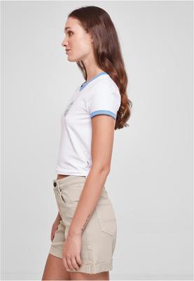 A fuss-free ladies' top exuding a welcoming summer spirit. The featured "peace" symbol is placed centrally on the chest and is surrounded by an Urban Classics lettering. The hems of the sleeves and the crew neck are stronger colored. The shirt is cropped and a slim fit. The material is high-quality organic cotton.