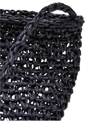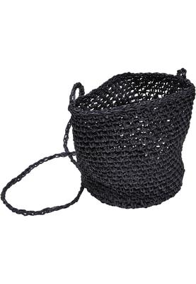 A small, fine raffia bag without any fuss such as lining or closure. It is made entirely of the natural material raffia paper! A subtle strap allows it to be worn over the shoulder or across the body. The bag presents shows a cylindrical shape and a fine weave pattern that is almost opaque.