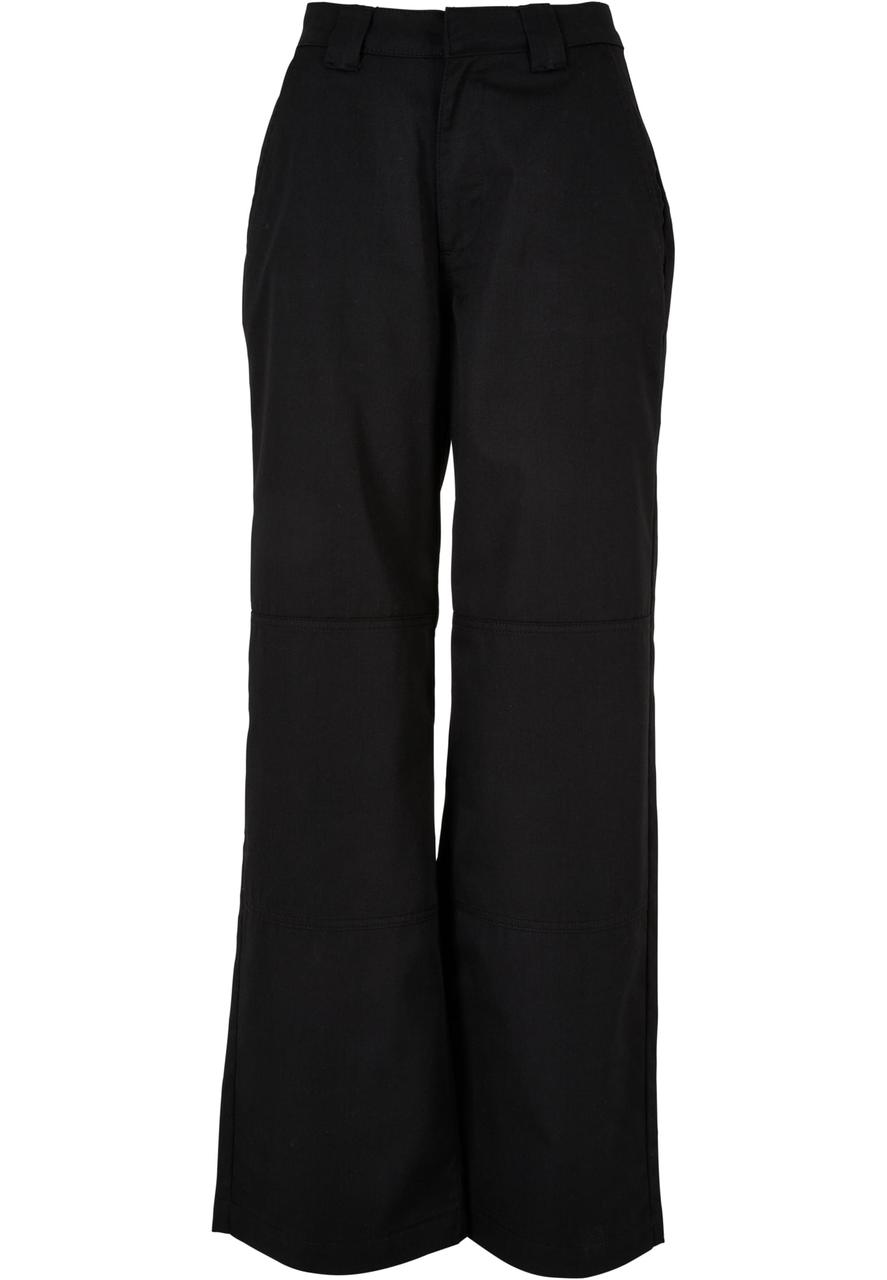The women's trousers are designed with long, straight legs and an elaborate waistband, which begins above the hips, includes wide belt loops and fastens with a zipper, hook and eyelet. Inserts above the knees as well as side and back pockets complete the design. The loose fit women's pants are made of a comfy cotton-elastane material mix that enables a snug fit.