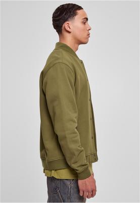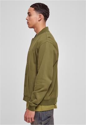 The men's college jacket satisfies with a straight, solid-colored design and typical style features such as button placket, side pockets and wide rib cuffs on sleeves and hem, as well as a ribbed collar. The fabric of the college jacket is 460 gsm heavy cotton and matches the casual oversize fit with dropped shoulders perfectly.