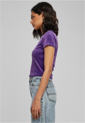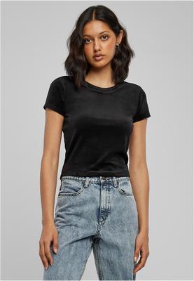 The simple yet effective women's tee features a cropped cut and smooth velvet material that turn it into an authentic fashion piece. Furthermore, it is equipped with a classic crew neck and short sleeves. The women's top is a slim fit.