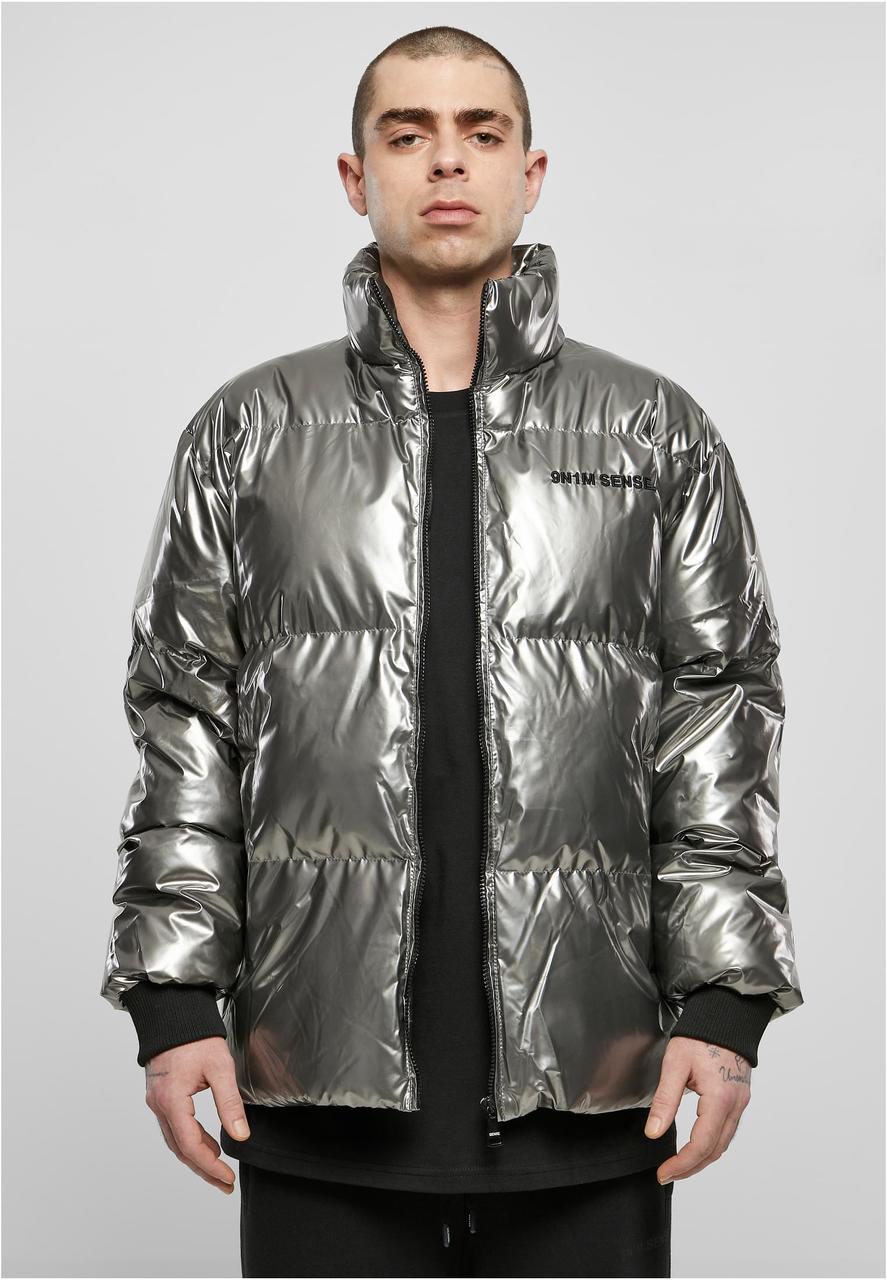 - short puffer jacket with embroidered logo on the chest in shiny lacquer look.