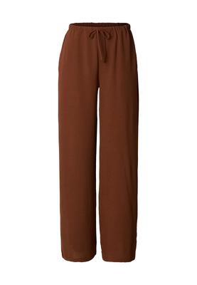 Womens structured wide-leg pants with a flowing, elongated silhouette. The high waistband with elastic drawstring adjusts comfortably and supports easy wear throughout the day. The textured fabric adds a clean, refined look that works for relaxed outfits as well as more polished combinations. Side pockets provide practical storage and complete the design. Versatile styling options for everyday wear.