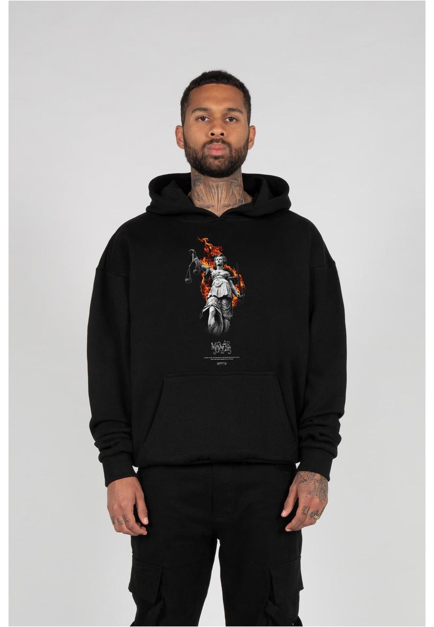 Heavy Oversized MJ Gonzales Hoody in black, usual MJG Fit with hiqh quality Justitia print, made from our premium 460gsm. cotton fabric.