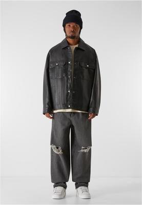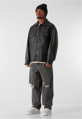Elevate any wardrobe with this imitation leather jacket, designed for those who appreciate a bold yet sophisticated style. The oversize fit offers a modern silhouette, while the matte finish adds a touch of understated elegance. Featuring large chest pockets with flaps and shiny silver snap buttons at the front center, cuffs, and pocket flaps adorned with a subtle logo, this jacket combines functionality with flair. Ideal for layering over casual or smart attire, it is an essential piece for those seeking to make a statement without compromising on comfort or versatility.