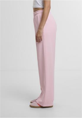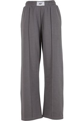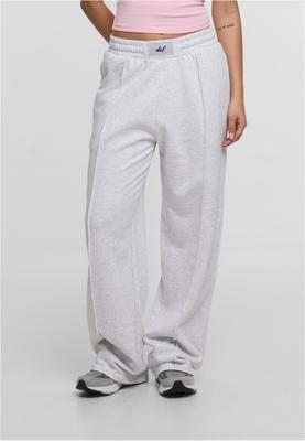 These trousers combine a modern wide-leg silhouette with athletic details. A standout feature is the elasticated waistband, accented with a contrasting logo patch at the center. Prominent pin tuck seams on the front lend a structured elegance to the flowing leg line, visually elongating the silhouette. Side slash pockets add a functional component to the design. An ideal piece for relaxed yet style-conscious looks.