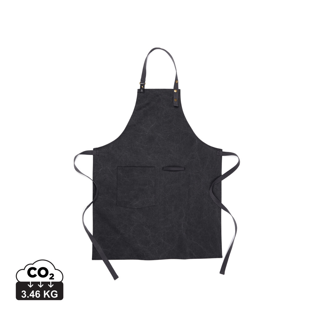 Apron made from 87% verified recycled material. This stylish apron is a practical kitchen accessory with a wonderful design. The apron has a pocket on the front and a loop for hanging utensils or kitchen towels, so you have everything to hand when you're in the middle of cooking. The apron has a soft and adjustable neck strap for increased comfort. Made from GRS (Global Recycled Standard) certified recycled materials. GRS certification ensures a fully certified supply chain of the recycled materials. Total recycled content is based on total product weight. This product contain 87% recycled cotton/polyester.