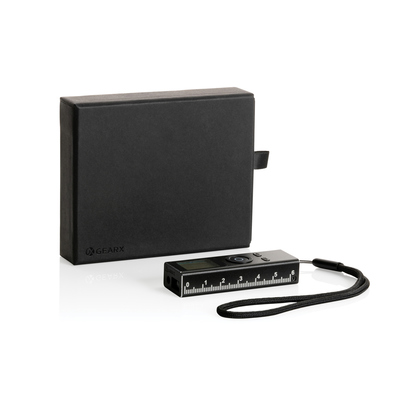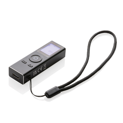 Functionality, materials and design all come together in this re-chargeable 30 metre laser measure made with RCS certified recycled aluminum. Total recycled content: 22% based on total item weight. RCS certification ensures a completely certified supply chain of the recycled materials. The laser measure uses a re-chargeable A-grade 250 mah battery so no need to replace the batteries. Simply re-charge via your USB socket and the included RCS certified recycled type C cable. Class 2 laser. Response time 0.1 second. Measuring system can be adjusted to metres/inches/feet. Laser colour: red. With sound reminder when measuring is finalised. Type-C in, 5V/1A. 4 modes: distance, square area, volume and pythagoras (corners)