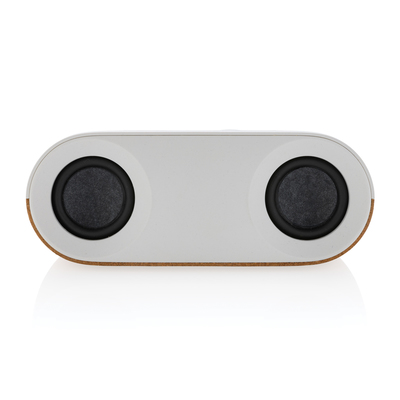 10W wireless speaker made with FSC® 100% cork and RCS (Recycled Claim Standard) certified recycled ABS. Total recycled content: 25% based on total item weight. RCS certification ensures a completely certified supply chain of the recycled materials.The speaker is equipped with a 1200 mAh battery to ensure up to 10 hours of playing time and BT5.3 for smooth connection with clear sound. Connection range up to 10 metres. With mic and pick up function to answer calls. Packed in FSC mix FSC® box. Including RCS certified recycled TPE charging cable. Item and accessories 100% PVC free.