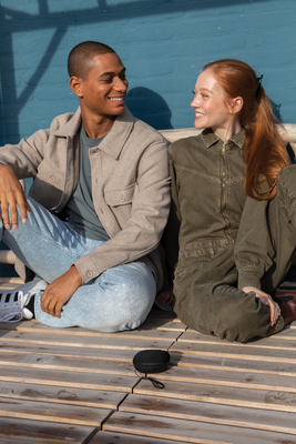 Bring this compact but powerful speaker wherever you go. Hanging out on the beach? Perfect! Party at the pool? Covered! Sudden rain? No worries! Your speaker is IPX7 waterproof up to 1 metre deep and max 30 minutes! After a sandy day at the beach simply rinse it off under the shower. The speaker comes with a buckle to carry it on your backpack or use it as a stand for the speaker. The impressive battery will last for up to 24 hours so get ready for an all-nighter. If you receive a call, just answer it with the integrated mic in clear quality. Urban Vitamin items are made without PVC and packed in plastic reduced packaging.